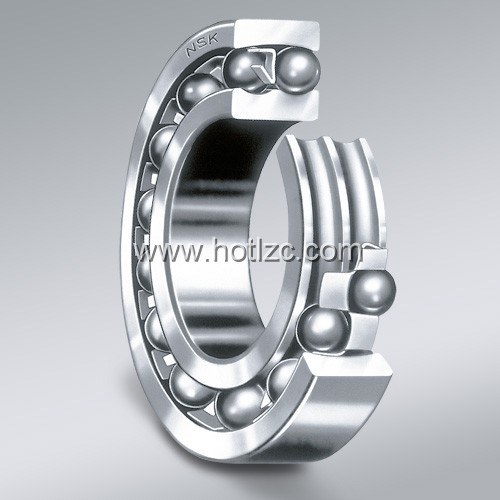 調心球軸承 內圈有二條滾道,外圈的滾道呈球面,球面的曲率中心與軸承中心一致。所以,內圈、球及保持架,對外圈相對自由可以地傾斜。因此由于外殼的加工誤差所產生的偏差,可以自動調整。